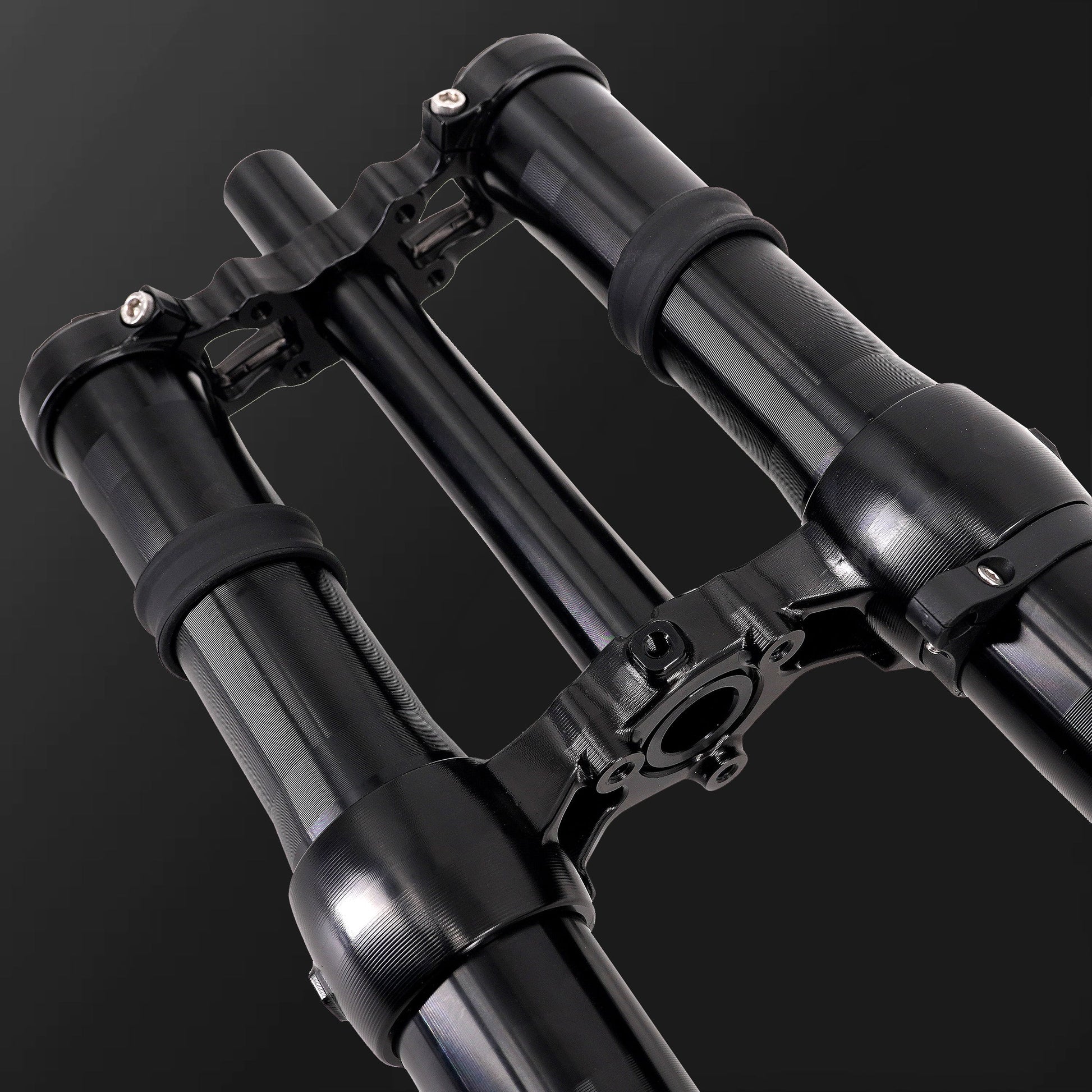 - Triple clamps: 6061-T6 aluminum, CNC-machined finishing