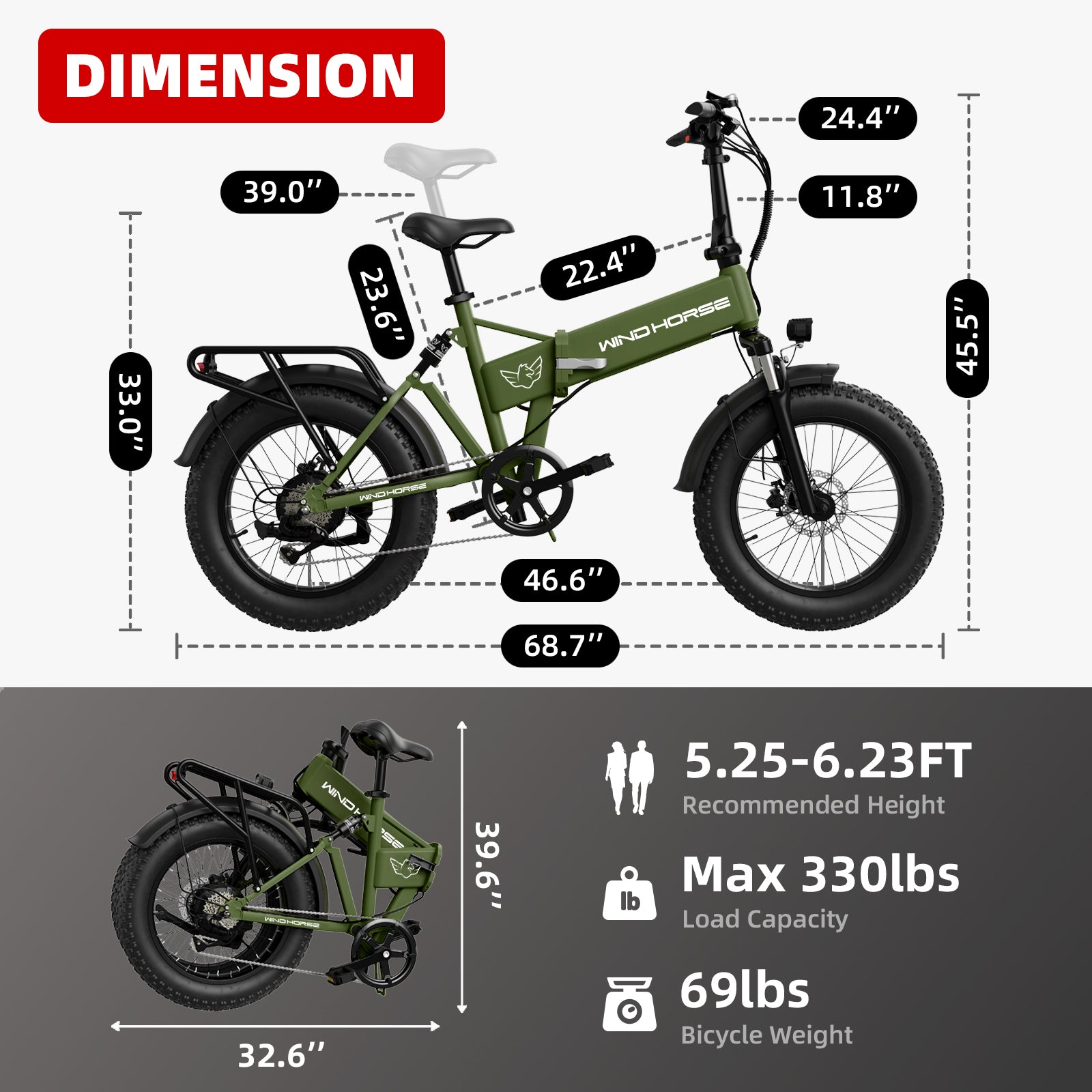 WINDHORSE Smart E Bike for Adults, 48V 13AH Foldable Electric Bike with 750W Motor, 20MPH 50 Mile Range, 7-Gears, Dumping Power Outage, 20" Fat Tires Beach Cruiser Bike, Marengo W0 Pro