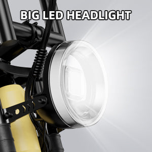 🚲【High Bright Headlight】This e-bike features a wired front headlight with four LED lamps. The front headlight brightness leads to a better field of view in low light enviroments, improving rider safety and visibility.