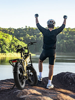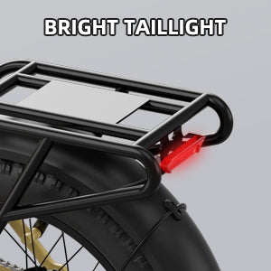 🚲【Fat Tires Design】The size of the tires is 20”x 4". This electric bicycle is suitable for all kinds of different terrians, such as sand, snow, dirt, grass, etc. In addition, the fat tires of the e-bike increases shock absorption, making the ride more comfortable.